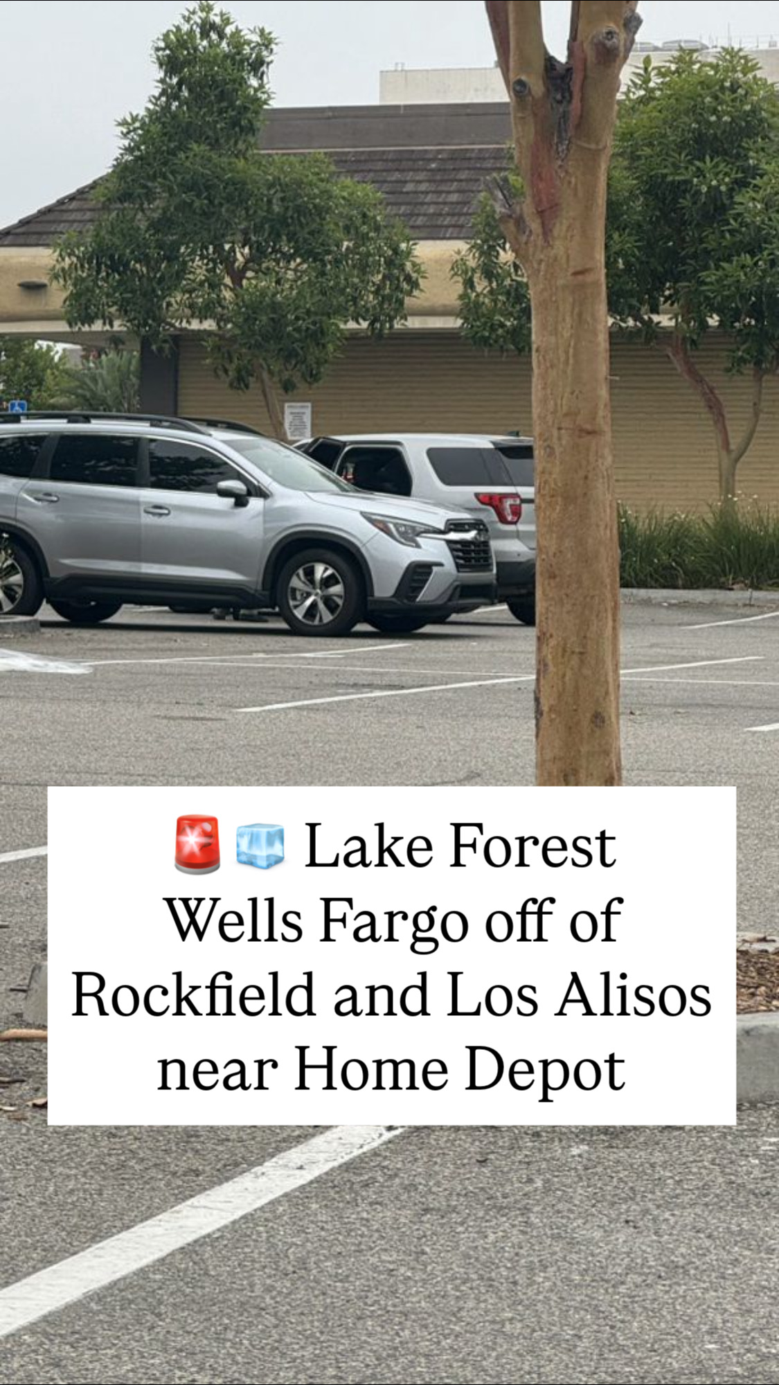 several people on the neighborhood forum on the ring app reported seeing ice at the wells fargo in lake forest off of rockfield near the home depot.